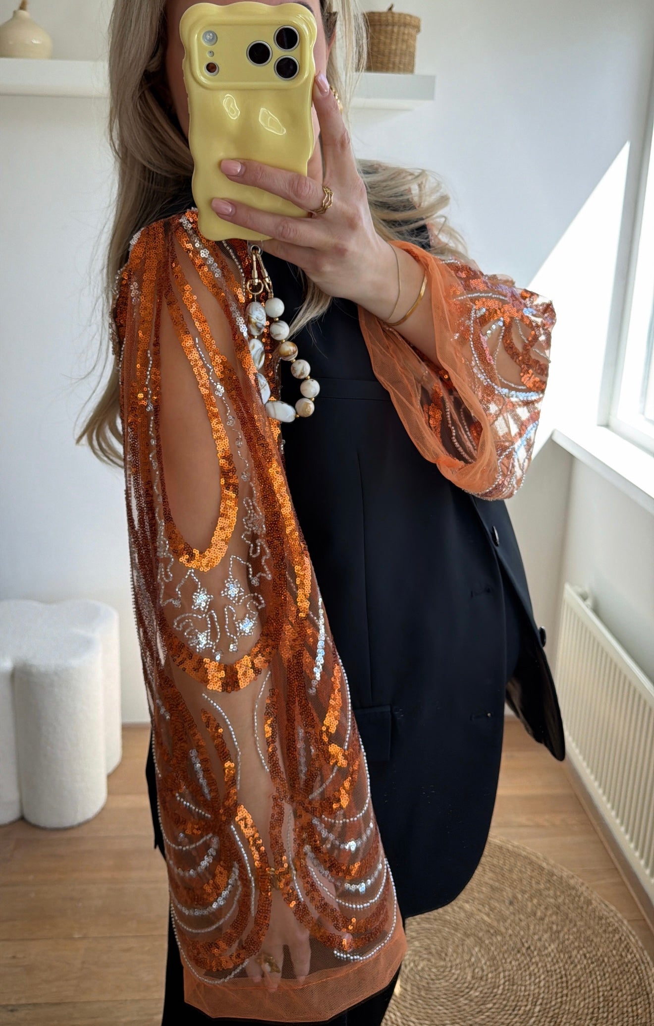Deze blazer is zwart en heeft 1x een split aan de achterkant. Model op de foto is 1.73m en draagt normaal maat M/L.